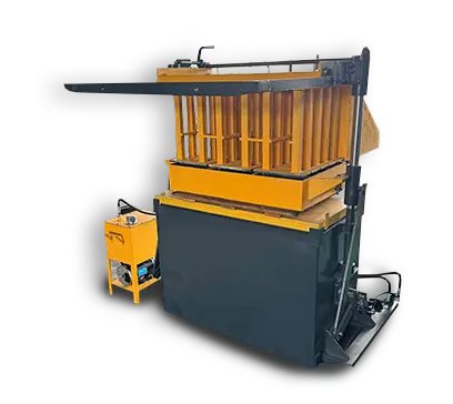 Este equipo es rápido, eficiente y es ideal para la carga de tarimas, llenado de molde, compactado y desmolde hidráulicos.